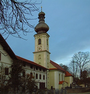 Neben der Pfarrkirche erhebt sich der ehem. Pfarrhof (Privatbesitz), ein schlossartiger Bau, der 1775 für Pfarrer Dominicus Ruedorffer, Sohn eines Münchner Bankiers, von Johann Baptist Lethner errichtet wurde.