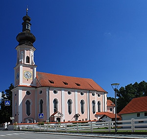 Eine der schönsten Rokoko-Kirchen des Erdinger Umlandes, in den Jahren 1754/55 von Johann Baptist Lethner an der Stelle einer älteren Kirche errichtet.